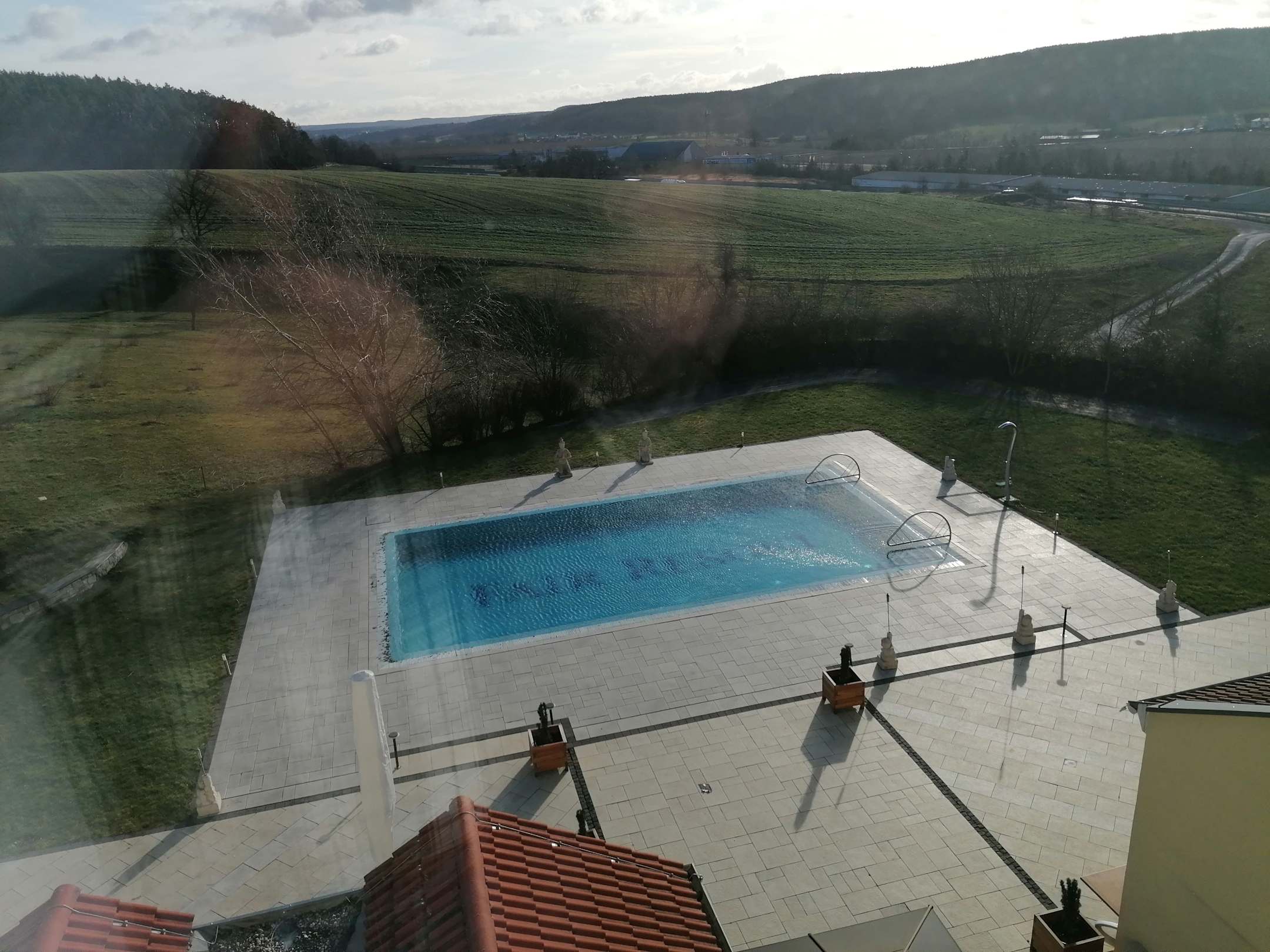Blick aus dem Fenster auf den Pool