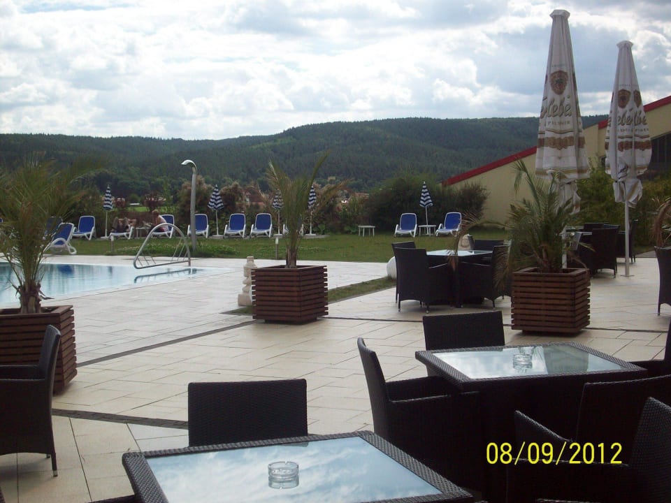 Tische u. Sessel luden zum Schlemmen u. Relaxen ein