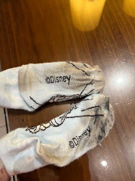 So sahen die Socken aus, als wir ohne Schuhe durch Zimmer gelaufen sind