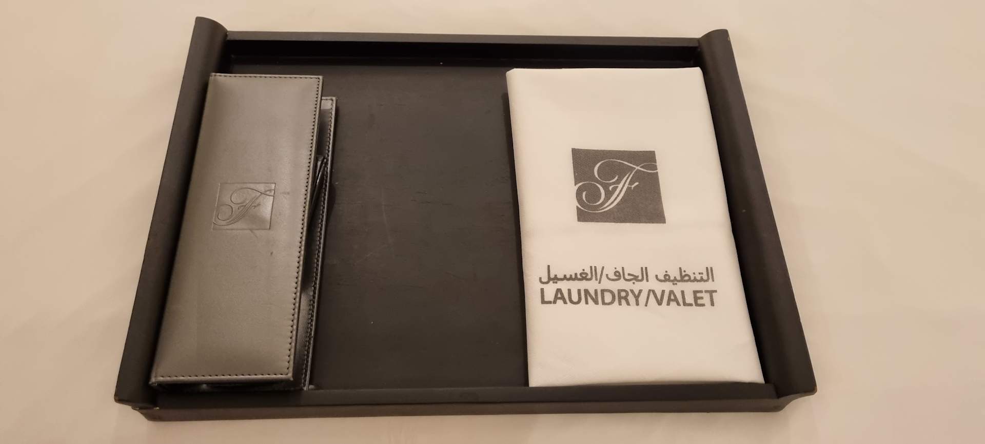 Fernbedienung in Lederetui und Wäschesack