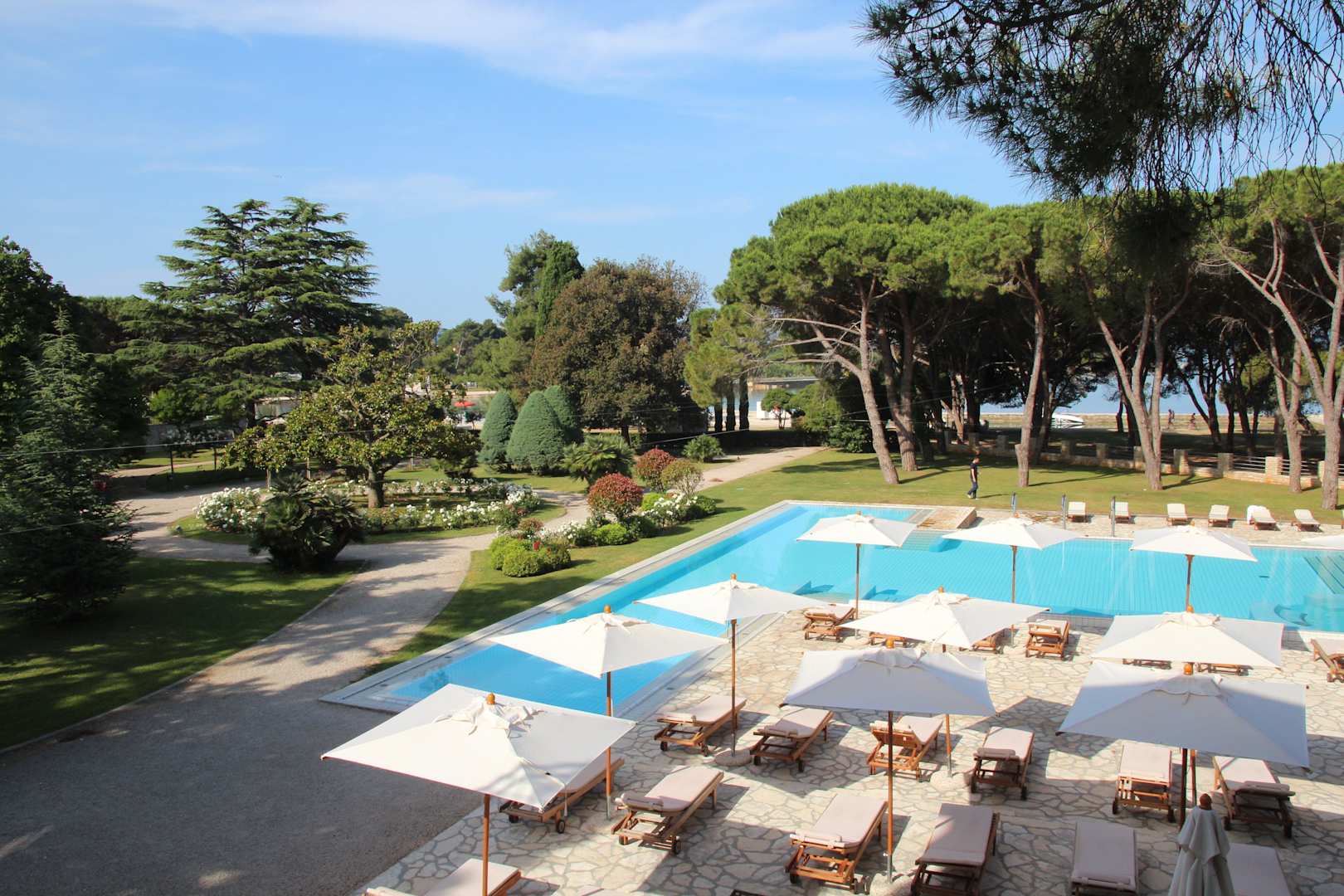 Blick auf Pool und Garten