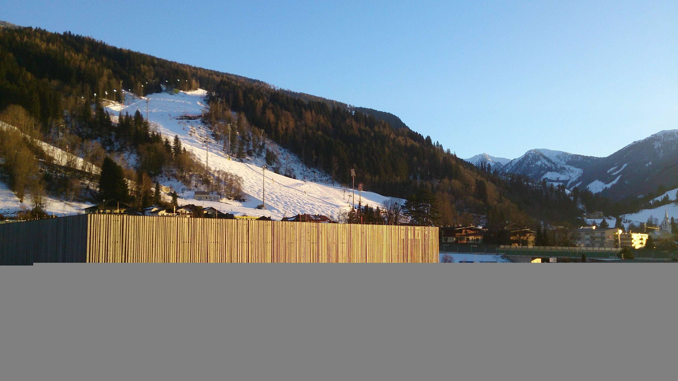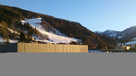 Blick vom Balkon auf den Zielhang in Schladming