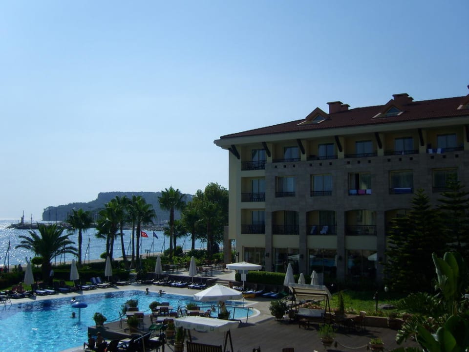 Poolbereich vom Hotelzimmer aus gesehen