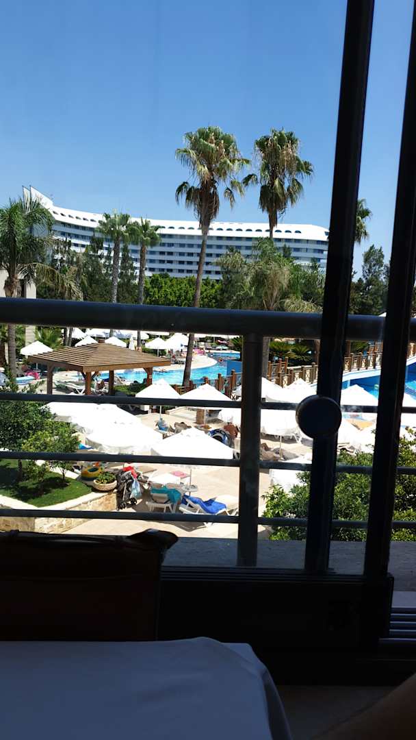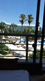 Von einer der Terrassen aus der Blick auf die Poolanlage