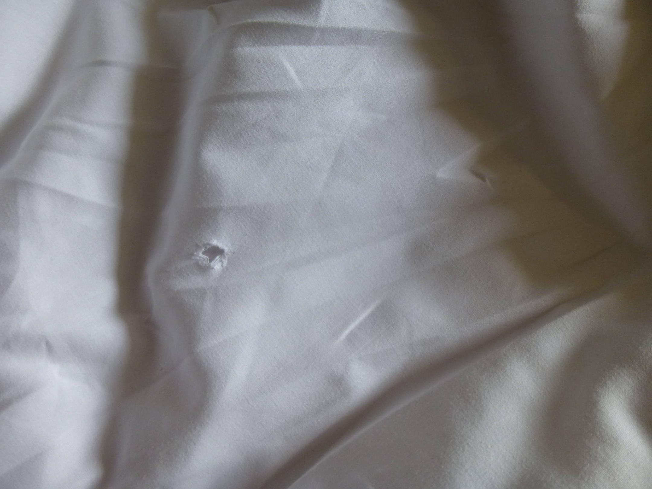 Kaputte ekelige Bettwäsche mit Flecken ...igitt...