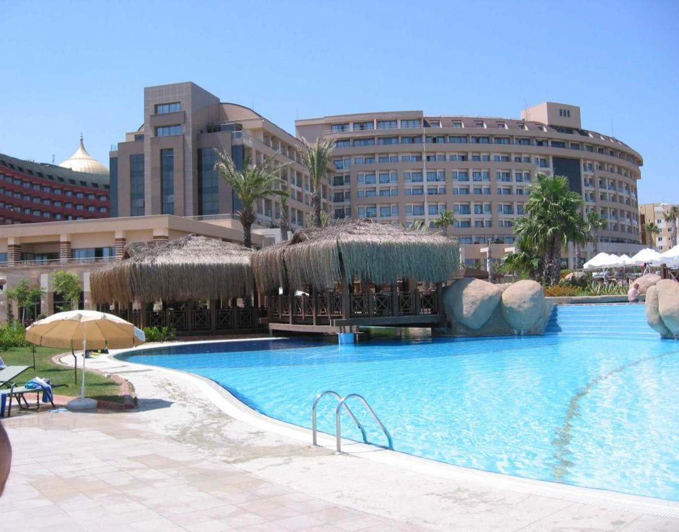Untere Poollandschaft mit Hotel