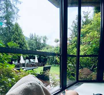 Der Blick Richtung Schattberg vom Indoor-Pool aus, selbst bei Regen wunderbar!