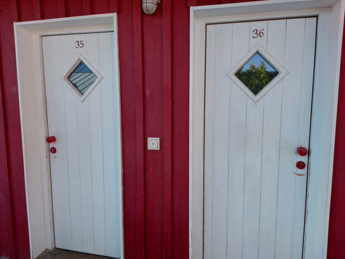 Eingangstür zu den beiden Appartements 35: teilrenoviert 36: nicht renoviert