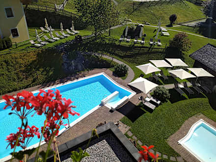 Blick auf den Außenpool, leider nicht mit dem Hallenbad verbunden