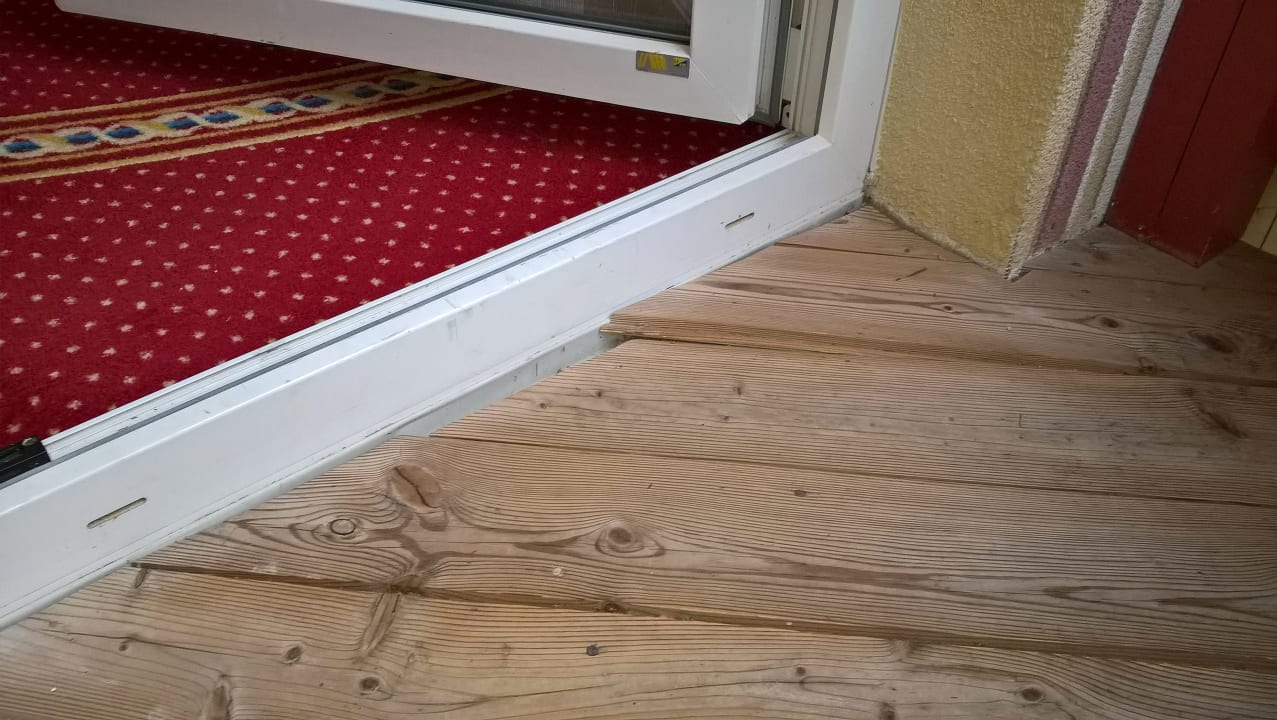 Sonstigesalter Holzfussboden des Balkons, den man wegen der Spreiselgefahr besser nicht mehr barfuß betreten sollte