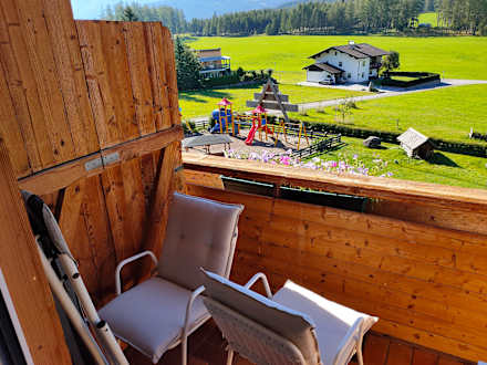 Der Balkon war etwas klein. Wir hatten Sicht auf den hoteleigenen Spielplatz und den Garten.