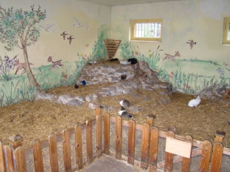 Außengehege mit Häschen und Meerschweinchen