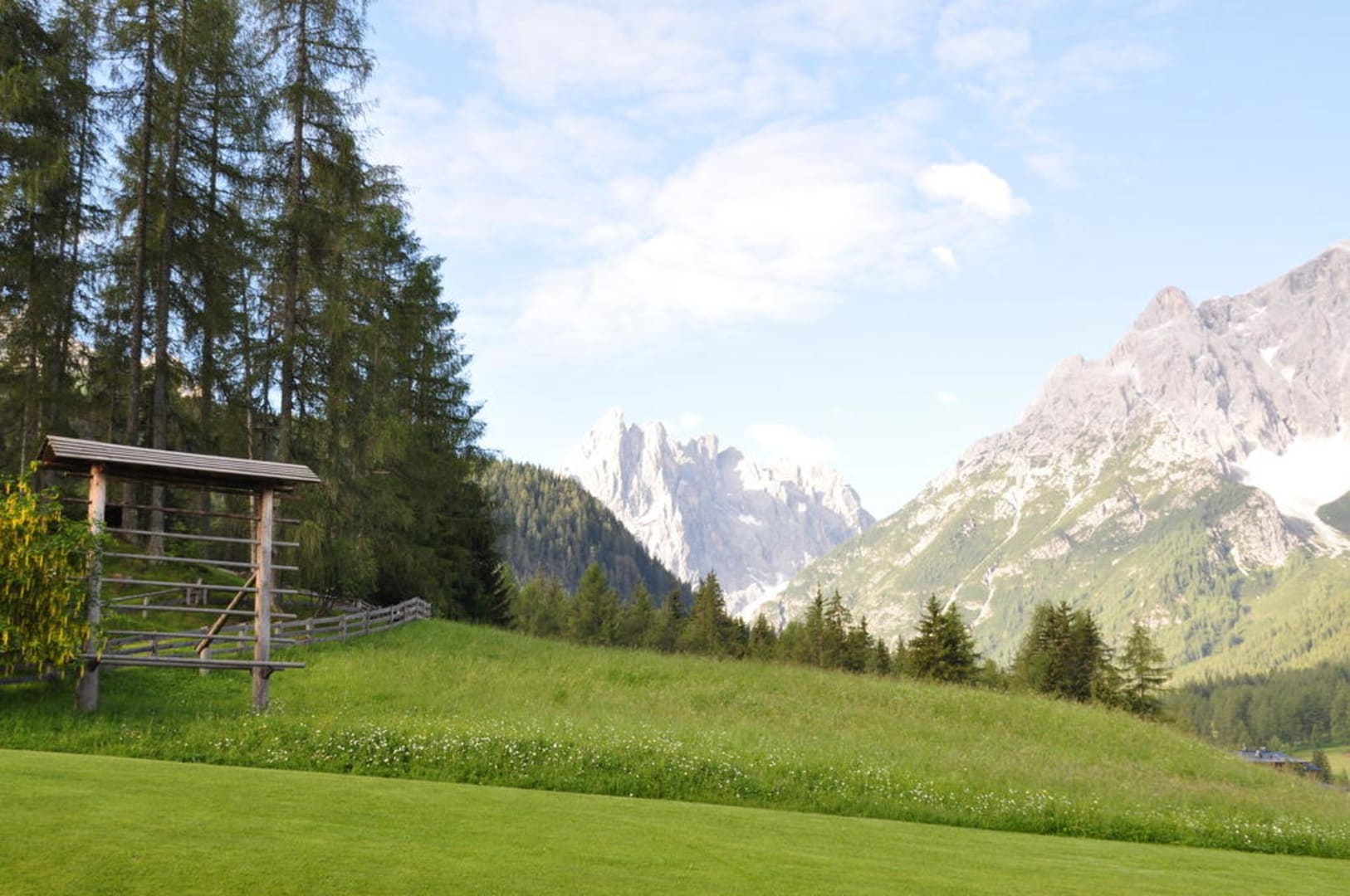 Wiese vor dem Hotel mit Blick auf die Berge