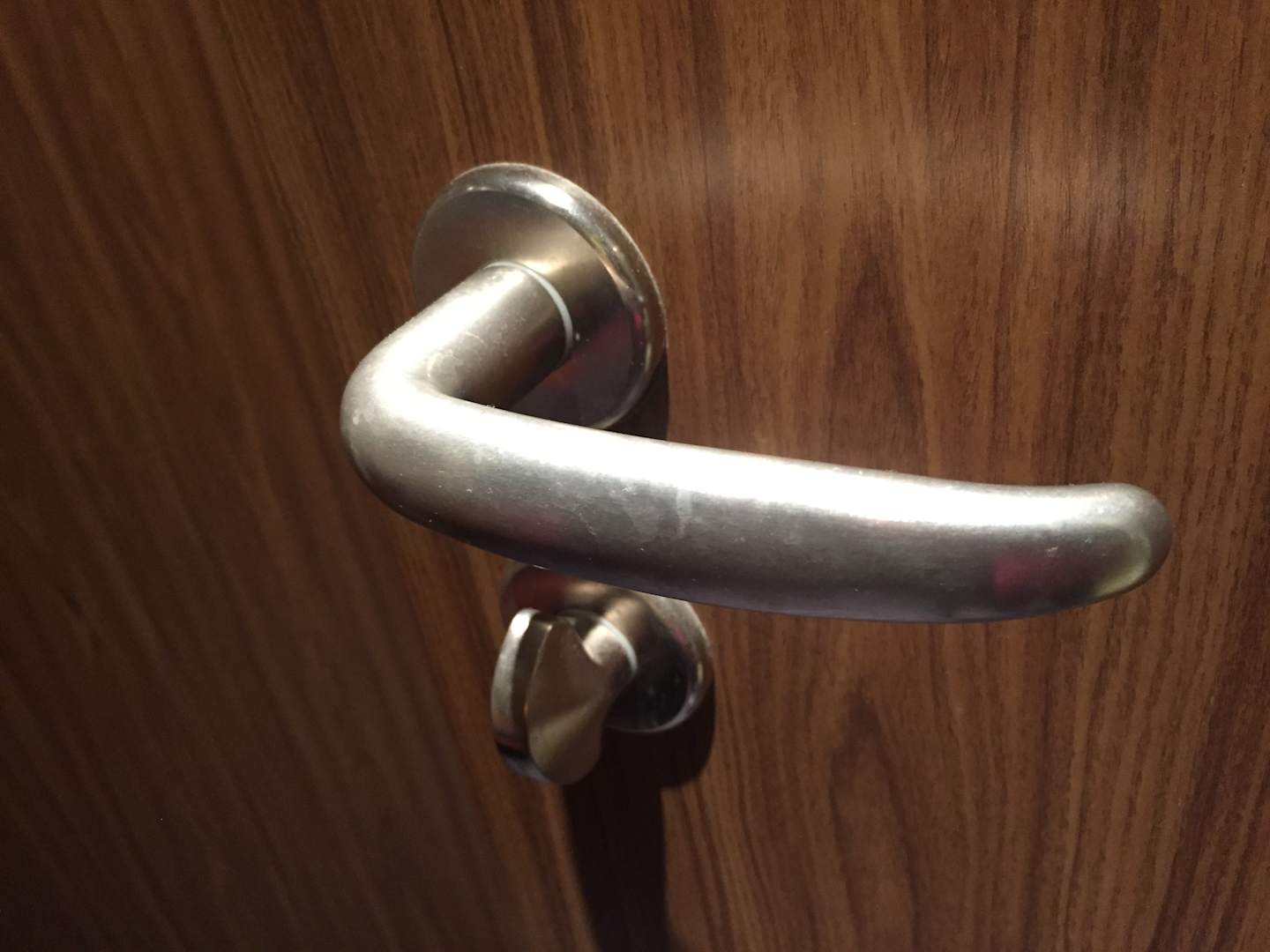 Schmierige ekelige Türgriffe mit erkennbaren Fingerabdrücken.