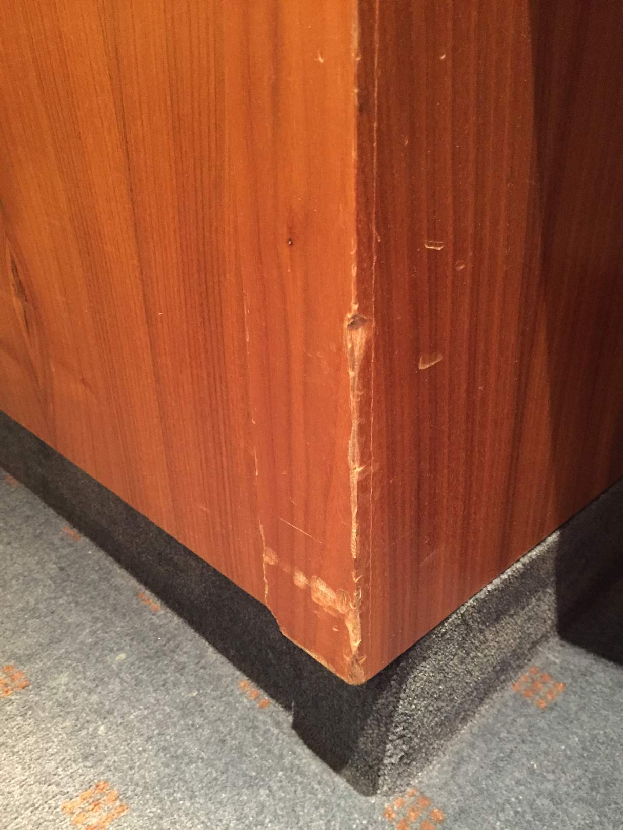 Abgestoßene Möbel und Holzkanten.