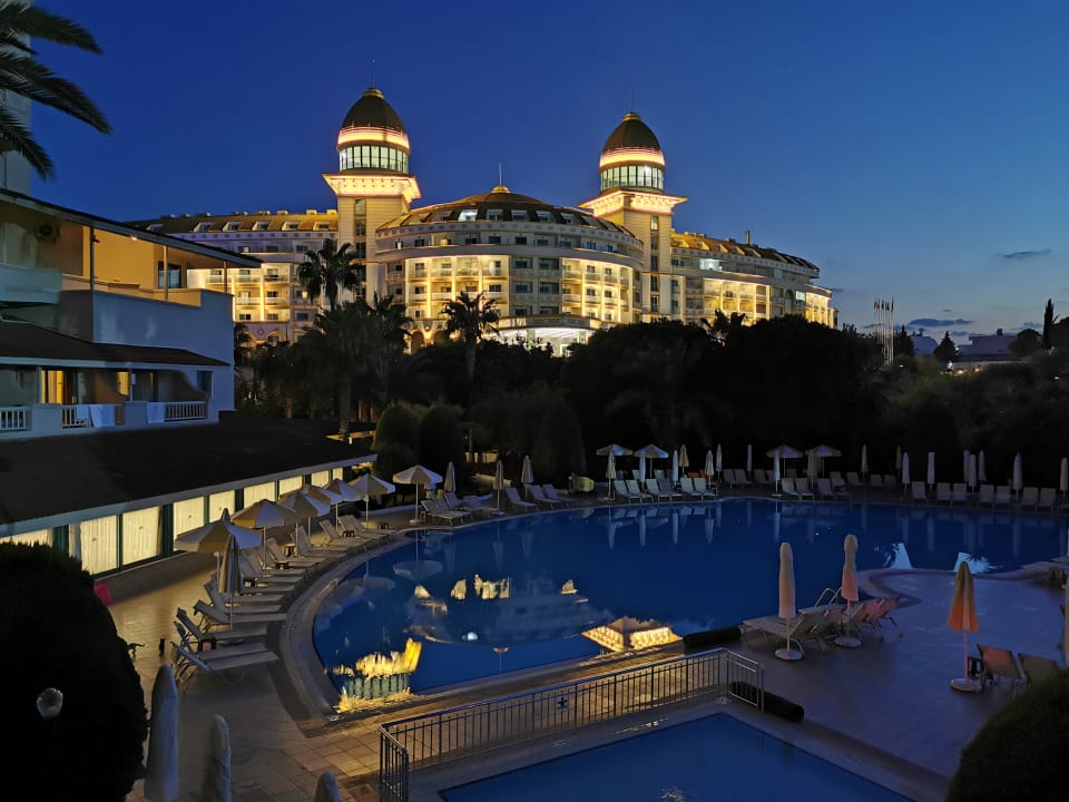 Ausblick auf den Pool bei Nacht aus dem Erdgeschoß
