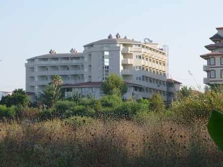 Blick vom Strand auf das Hotel