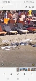 Überall Sandsäcke, dre kiger Strand