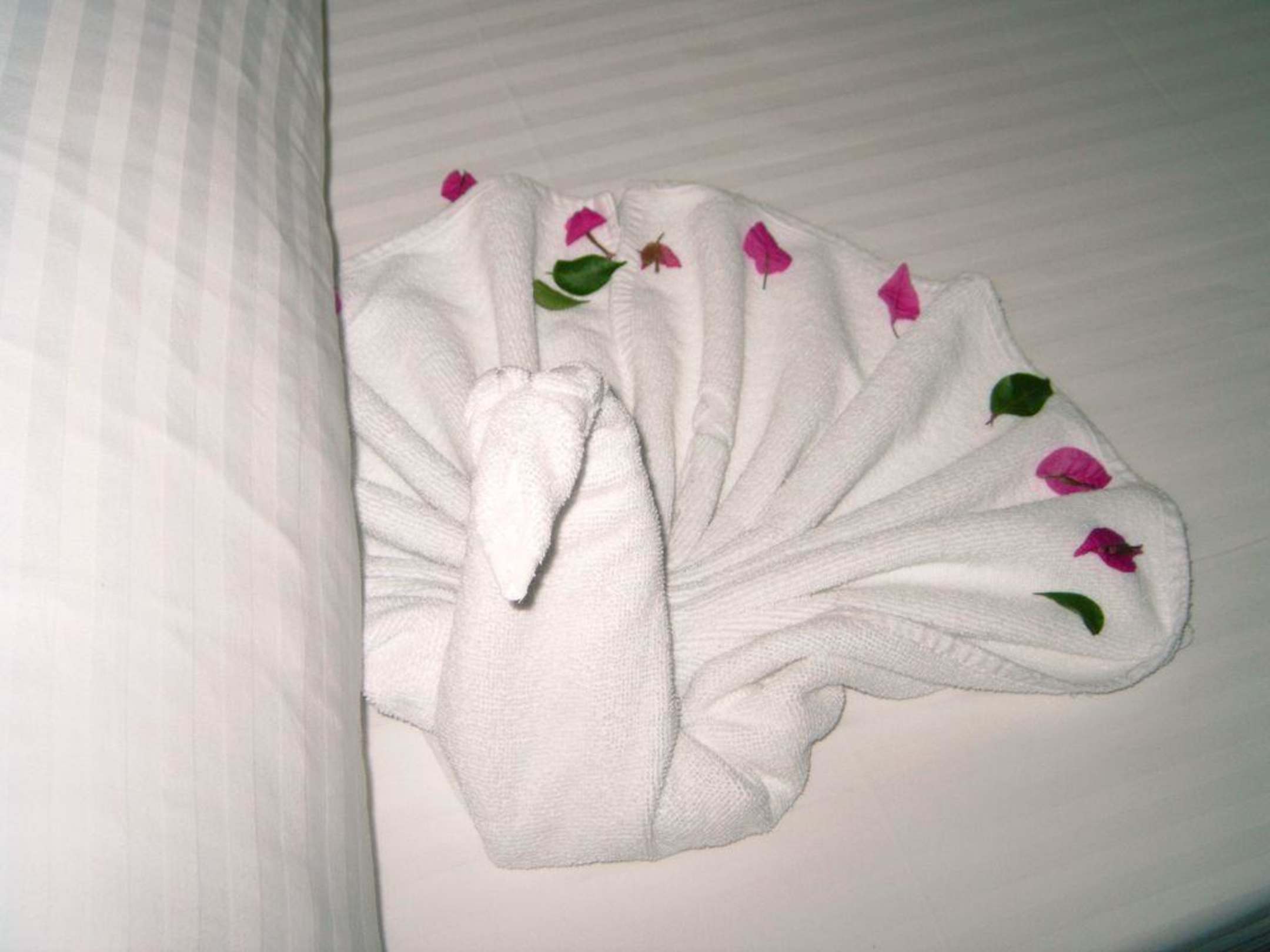 Die Putzfrau hat jeden Tag ein neues Motiv auf die Betten gemacht.