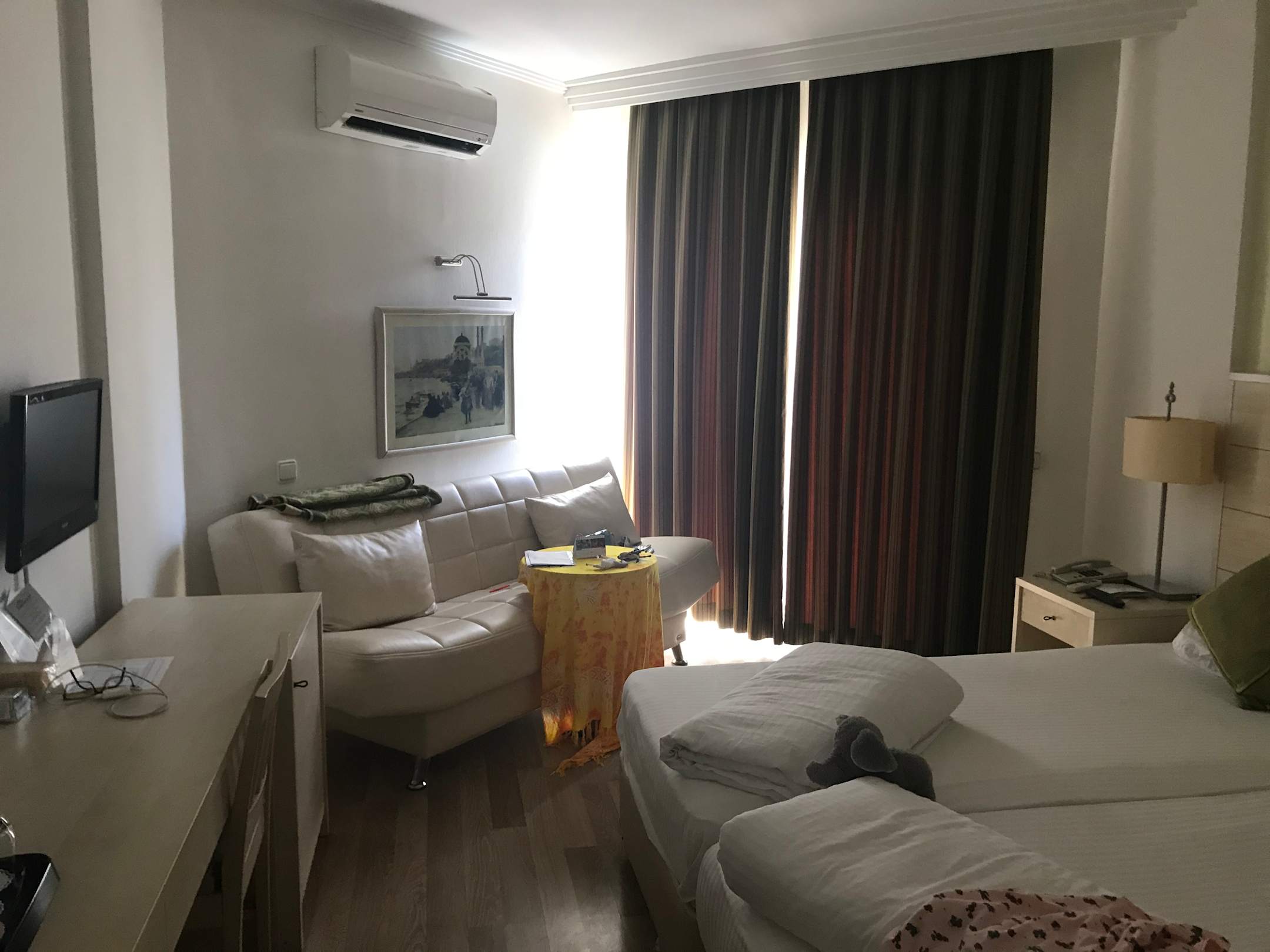 Die Zimmerausstattung ist neuwertig mit bequemen Bett , Tv , Balkon und Klima
