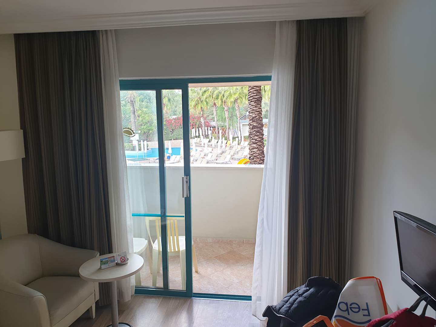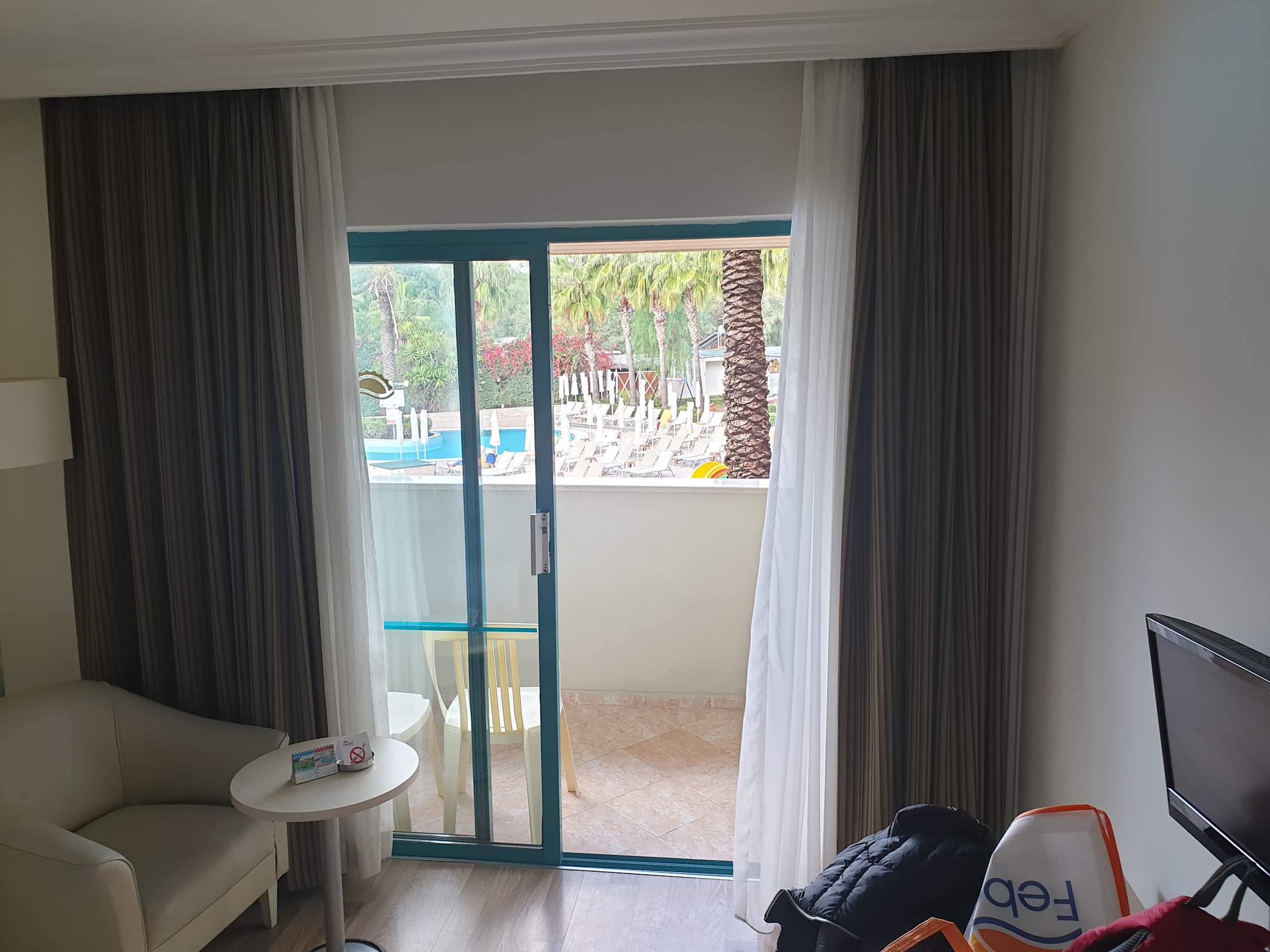 Blick vom Familienzimmer (das teurere) zum Poolbereich