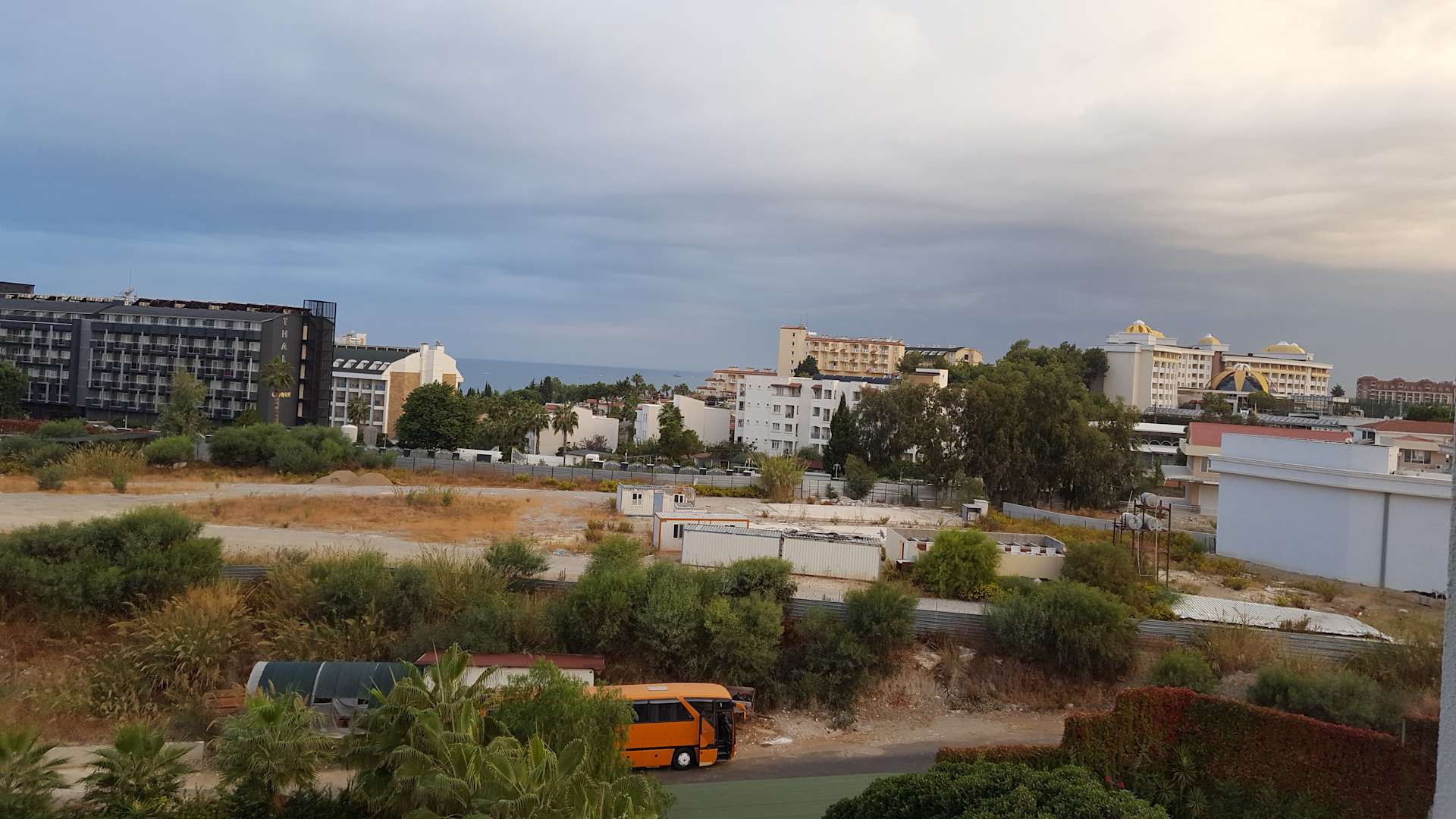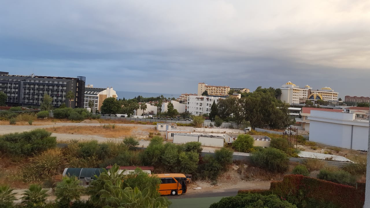 Das ist die Aussicht aus der 4. Etage mit Poolblick.... und der häuslichen Hinterhof Wüste.