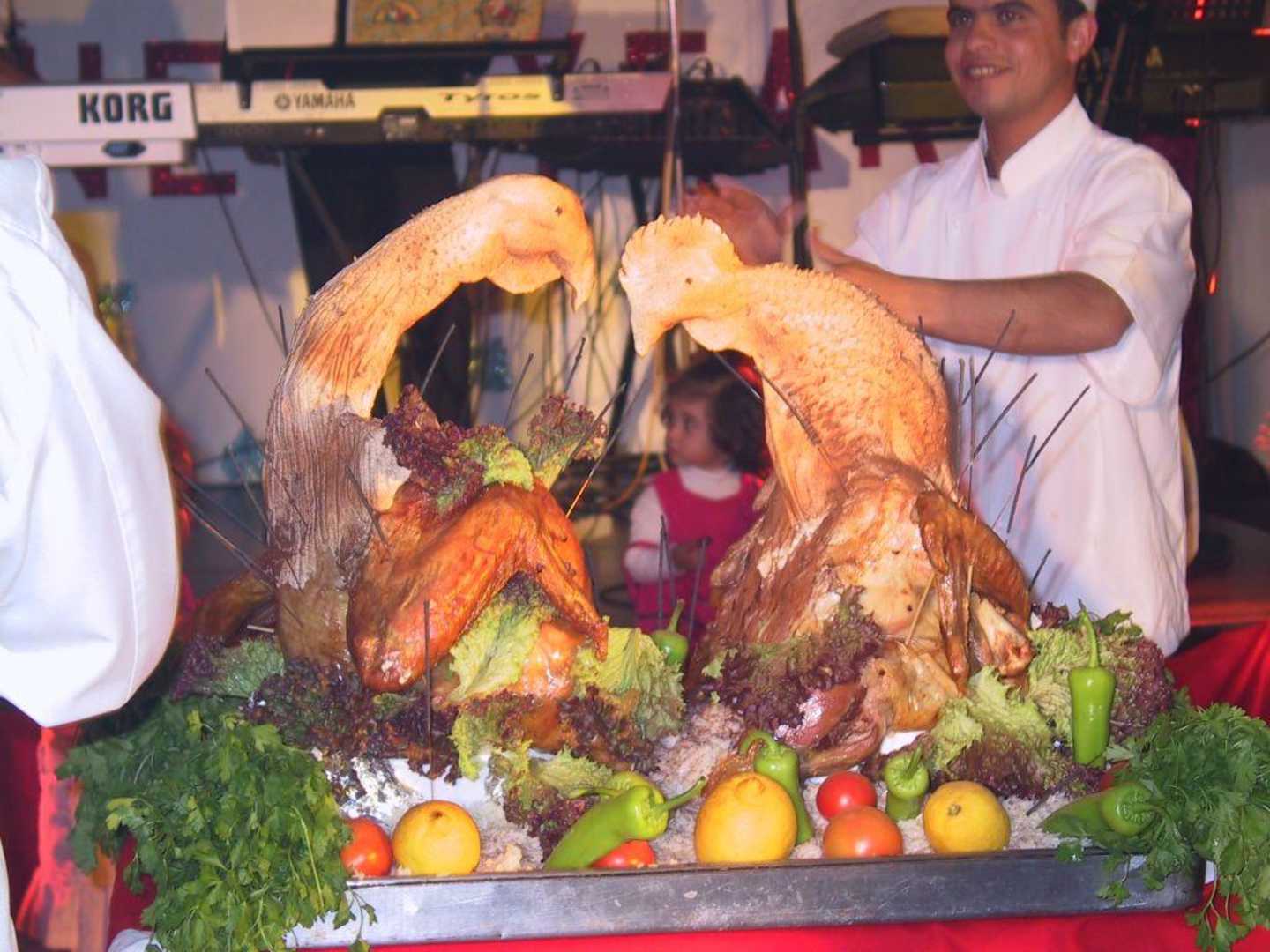 Fast zu schade um zu essen!Die Truthäne wurden, wie im Traumschiff, in den Speisesaal gefahren! Ein Höhepunkt des Abends!