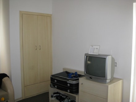 Fernseher und Schrank im Wohnzimmer der Suite
