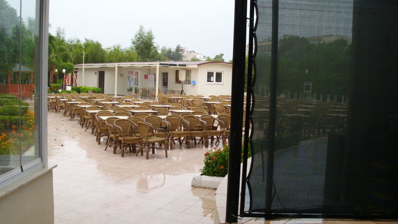 Blick vom Innenpool nach draußen