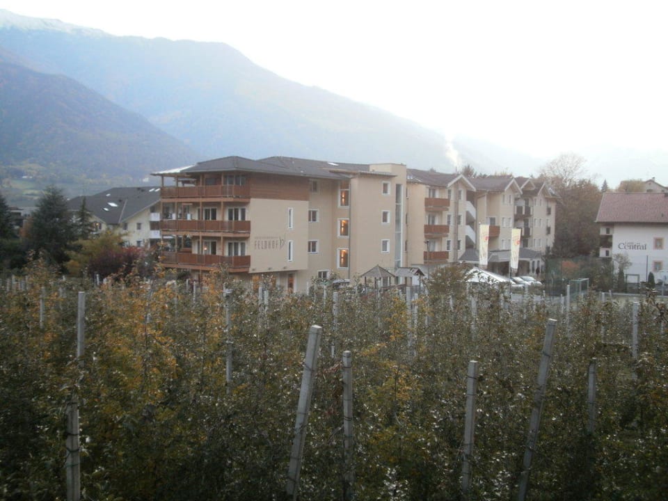 Der Feldhof inmitten von Apfelplantagen