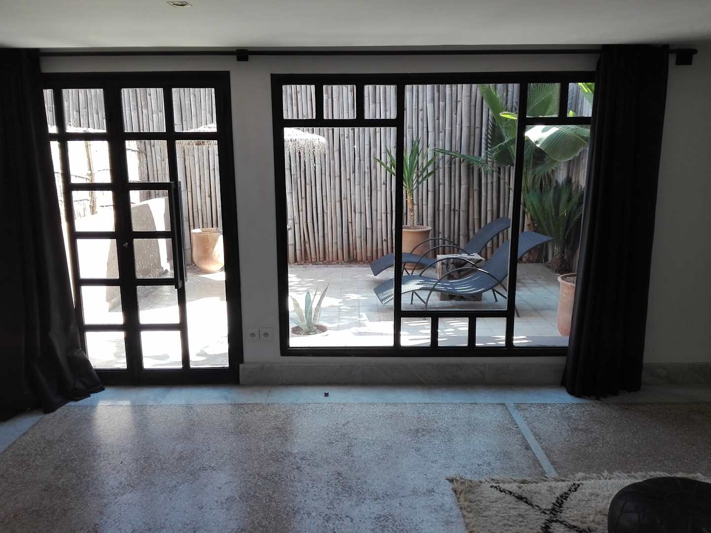 Kellerzimmer, Sicht auf Kellerterrasse