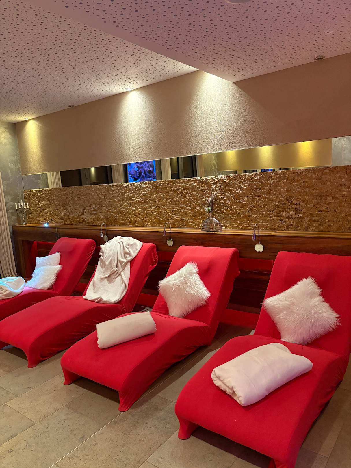 Spannbezüge über die Liege und schon wird es zum roten Raum
