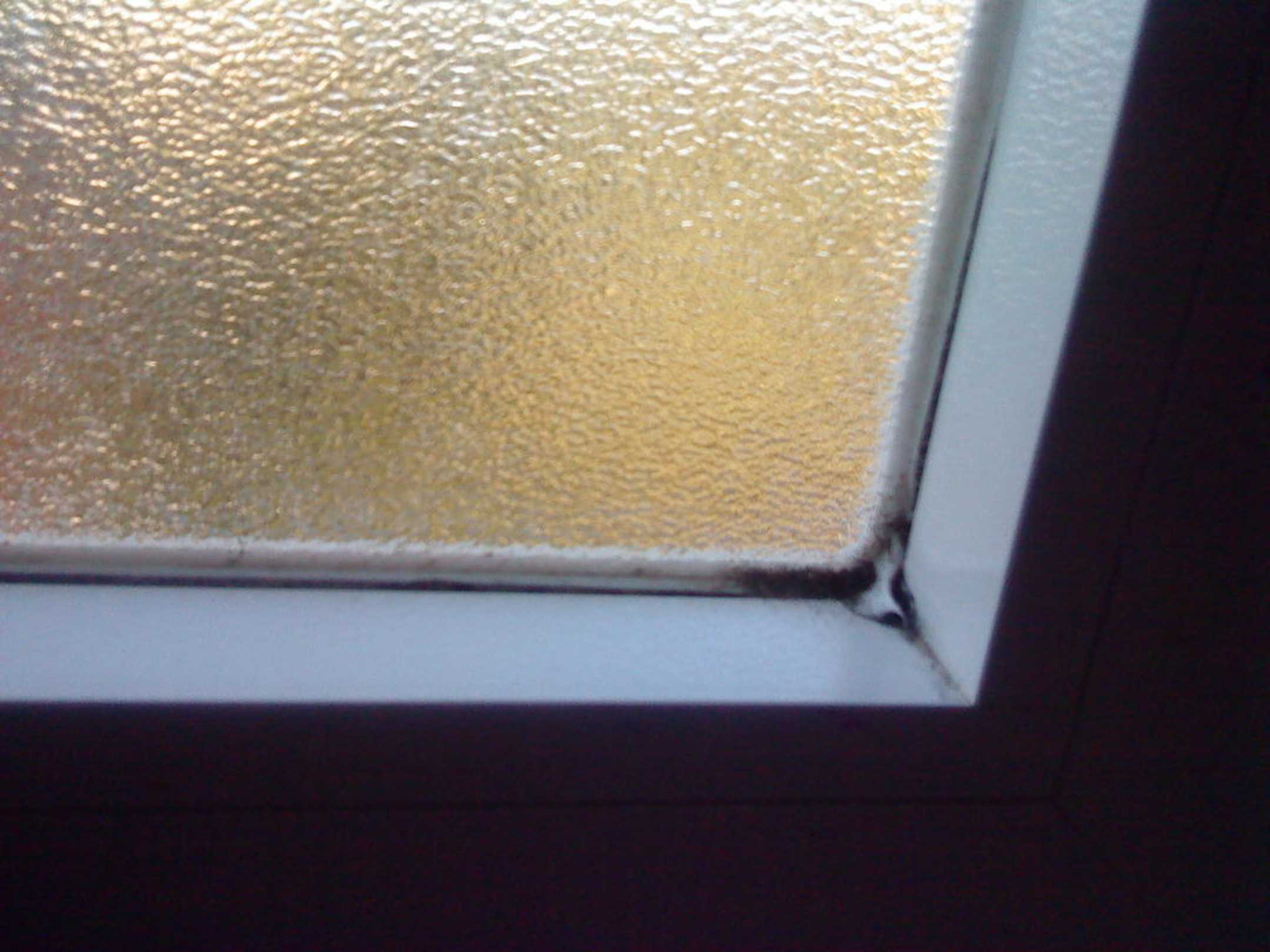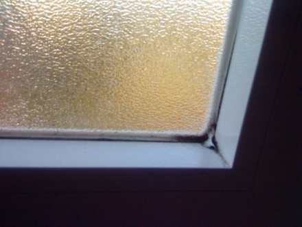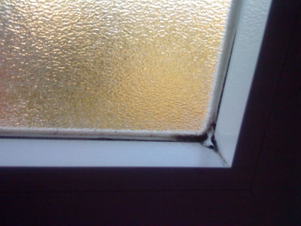 Fenster vom BadBild zeigt den Fensterrahmen vom Bad innen, wurde anscheinend lange Zeit nicht gereinigt, Silikon ist schwarz im unteren Bereich.