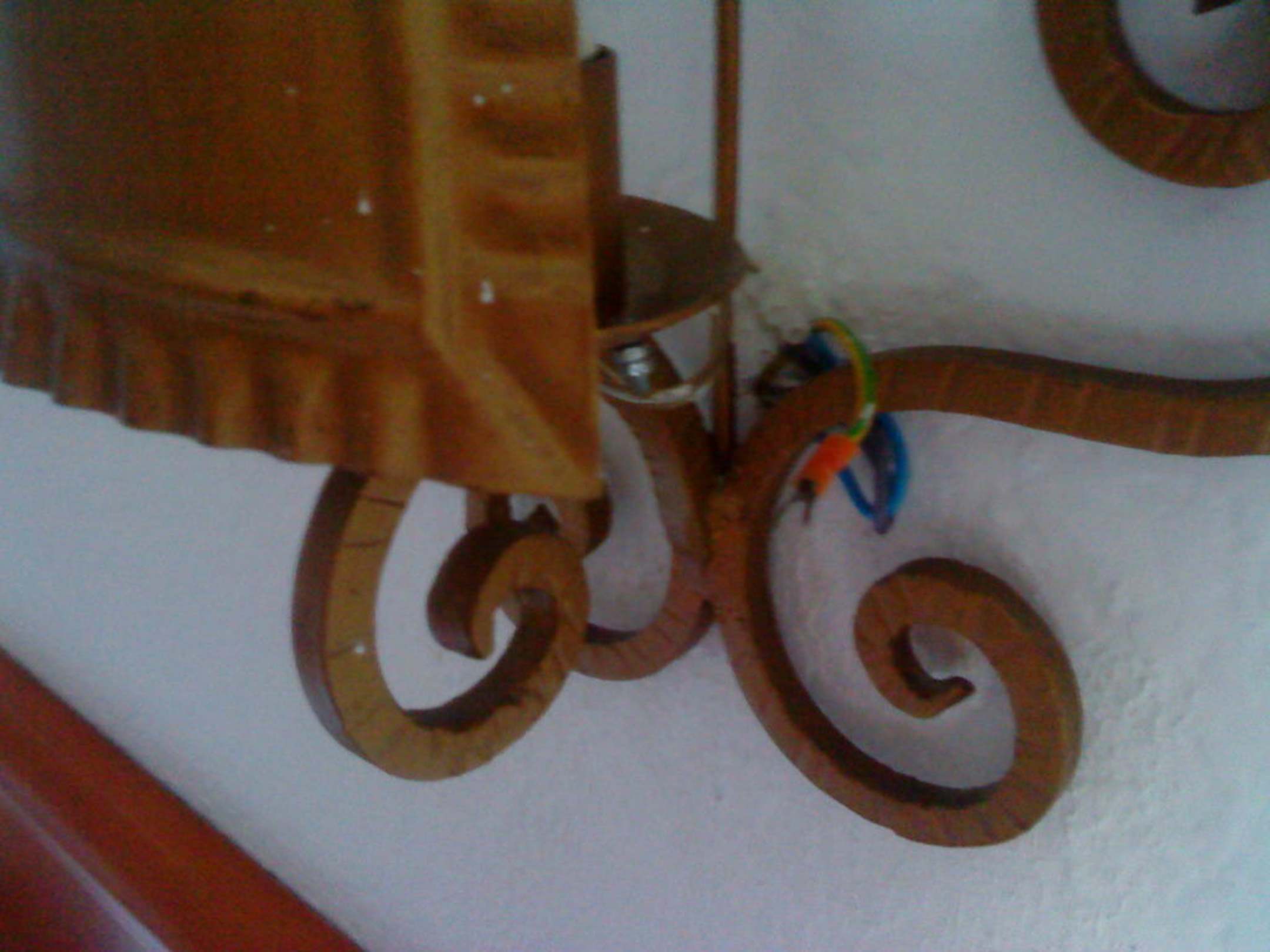 Das Bild zeigt die Lampe am Bett. Nicht nur das die Klemme und die Drähte freiligen (fehlende Schutzisolierung) ist der Schutzleiter nicht angeschlossen!!! Im Fehlerfall Lebensgefahr!