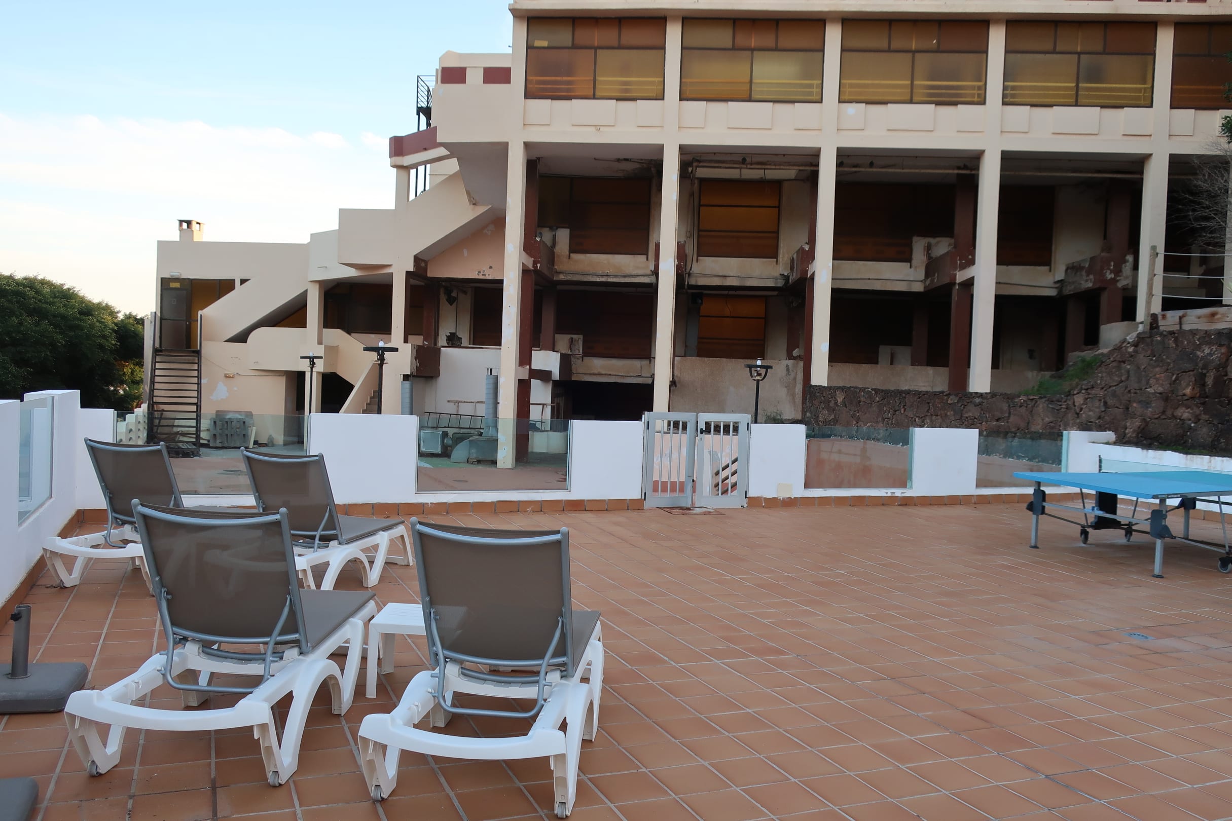 Die Sonnenterrasse bietet keinen schönen Ausblick