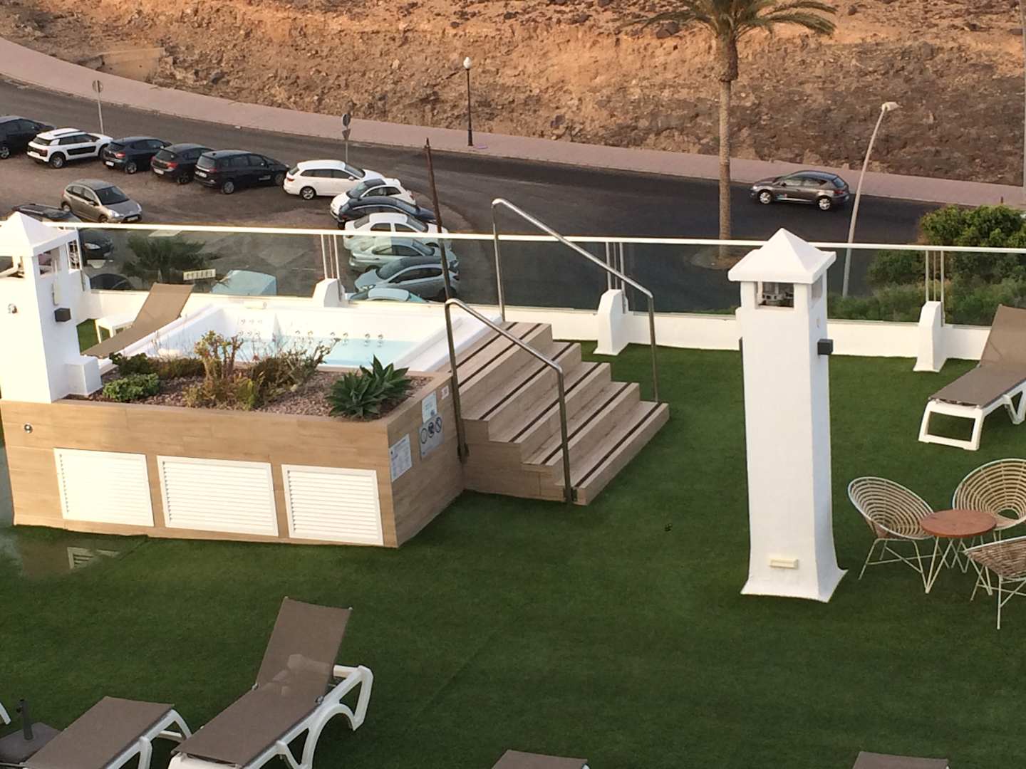 Ausblick vom Balkon auf den Whirlpool im 7.stock