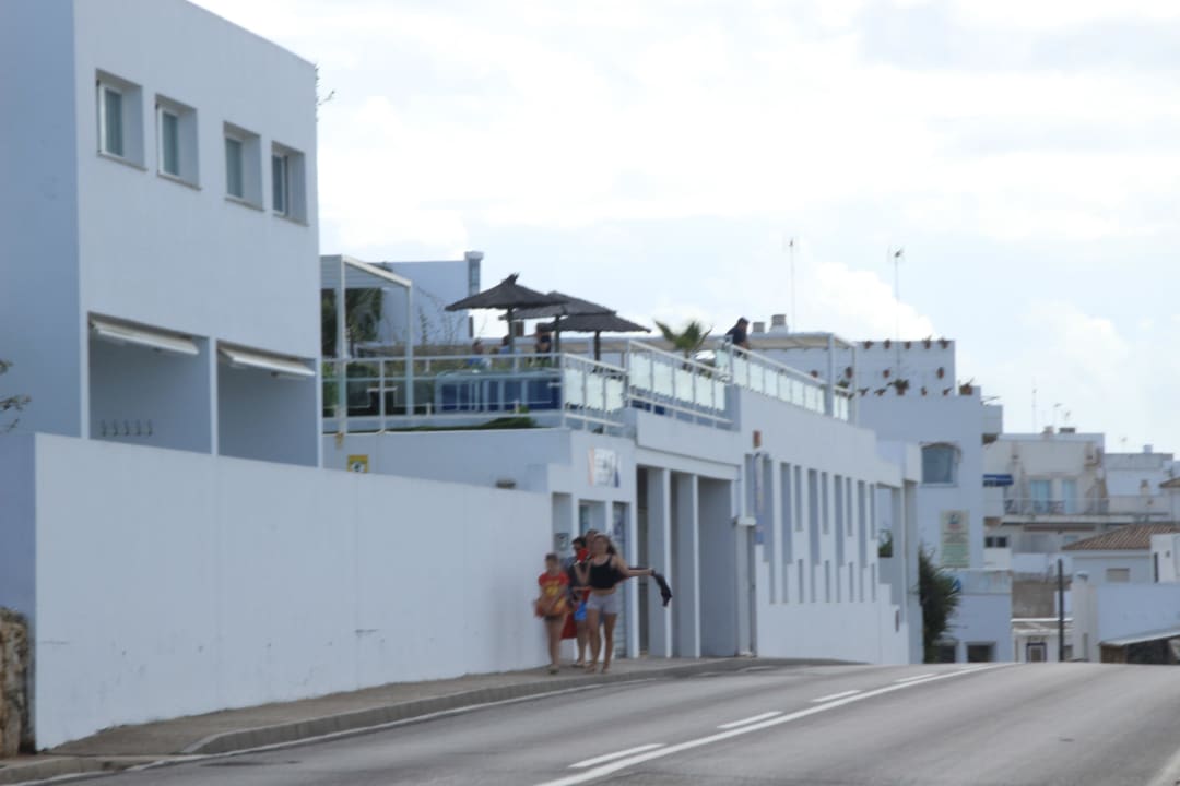 Straße, mit Blick zum Hotel (Terrasse)