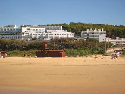 Blick vom Strand auf Hotelanlage
