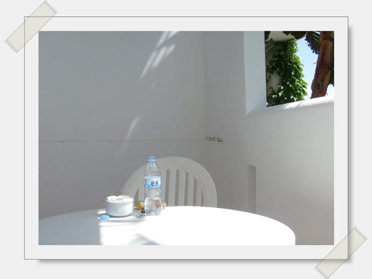 BalkonTisch und Sessel, vielleicht kann man im Hintergrund auch noch die vorhandene Wäscheleine sehen