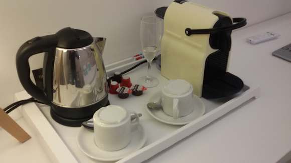 Wasserkocher und Kaffemaschine sind im Zimmer