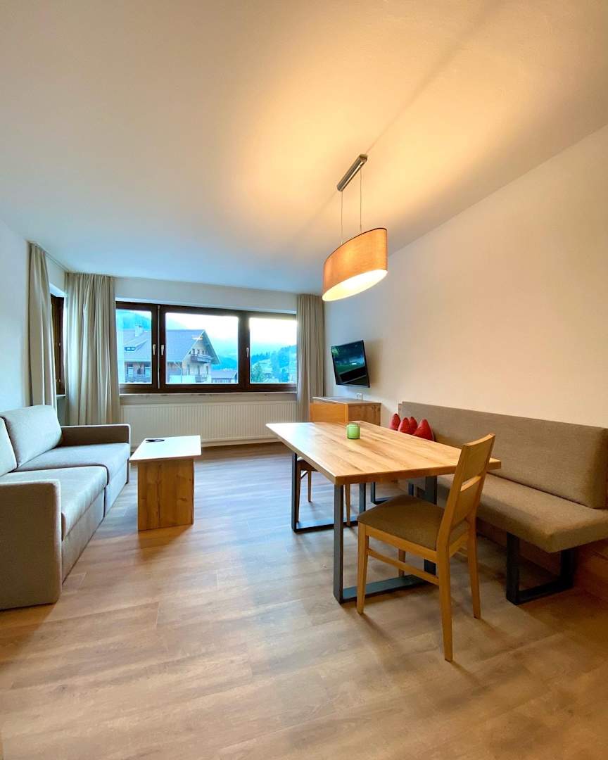 App. Nr. 5 Wohnzimmer mit Fensterfront und Panoramablick