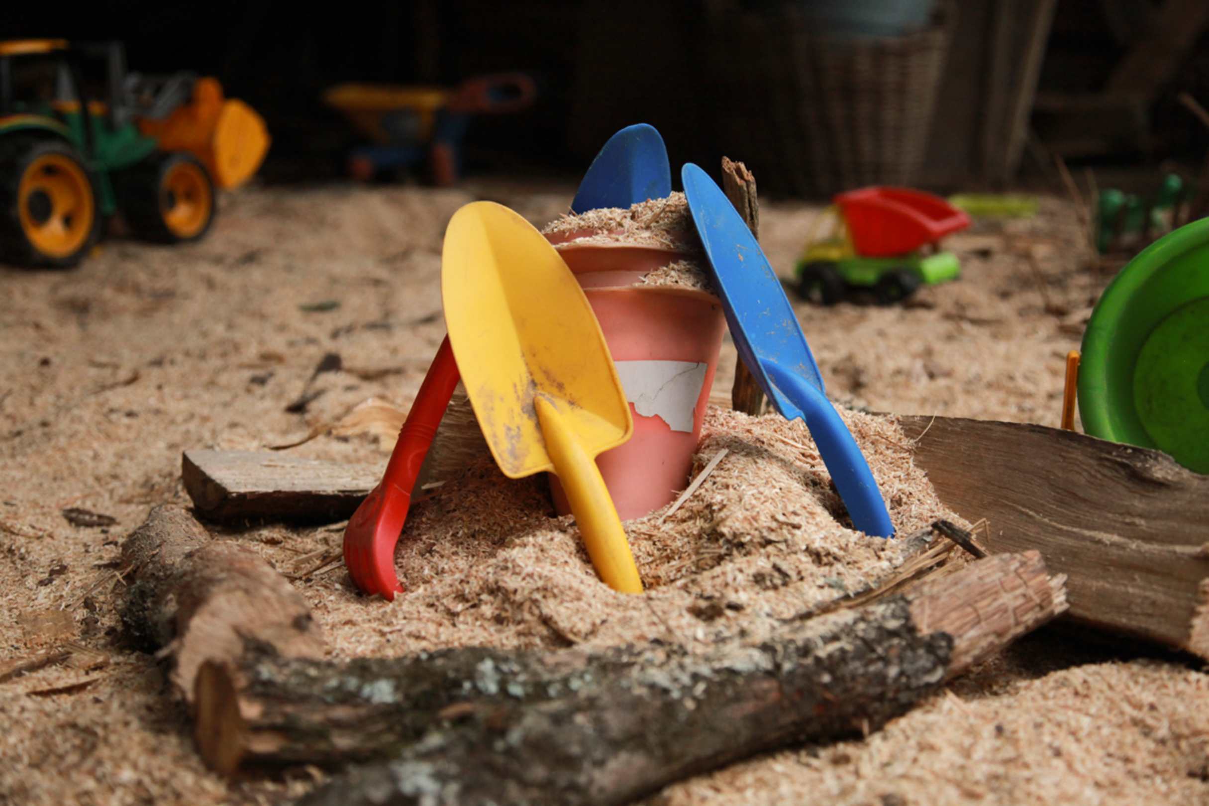 Kinderspiel in Sägespäne