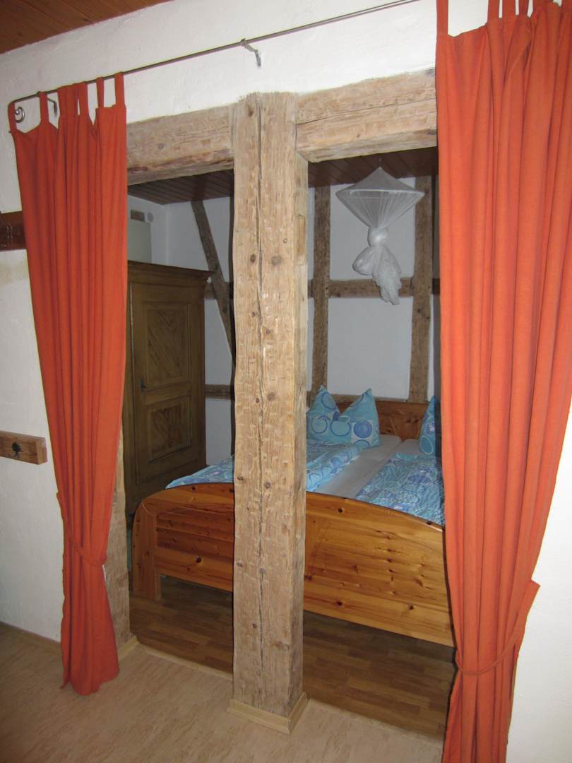 Sehr gemütliches freigelegtes altes Fachwerk im Schlafzimmer