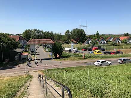 Eingang zum Feriendorf vom Deich gesehen