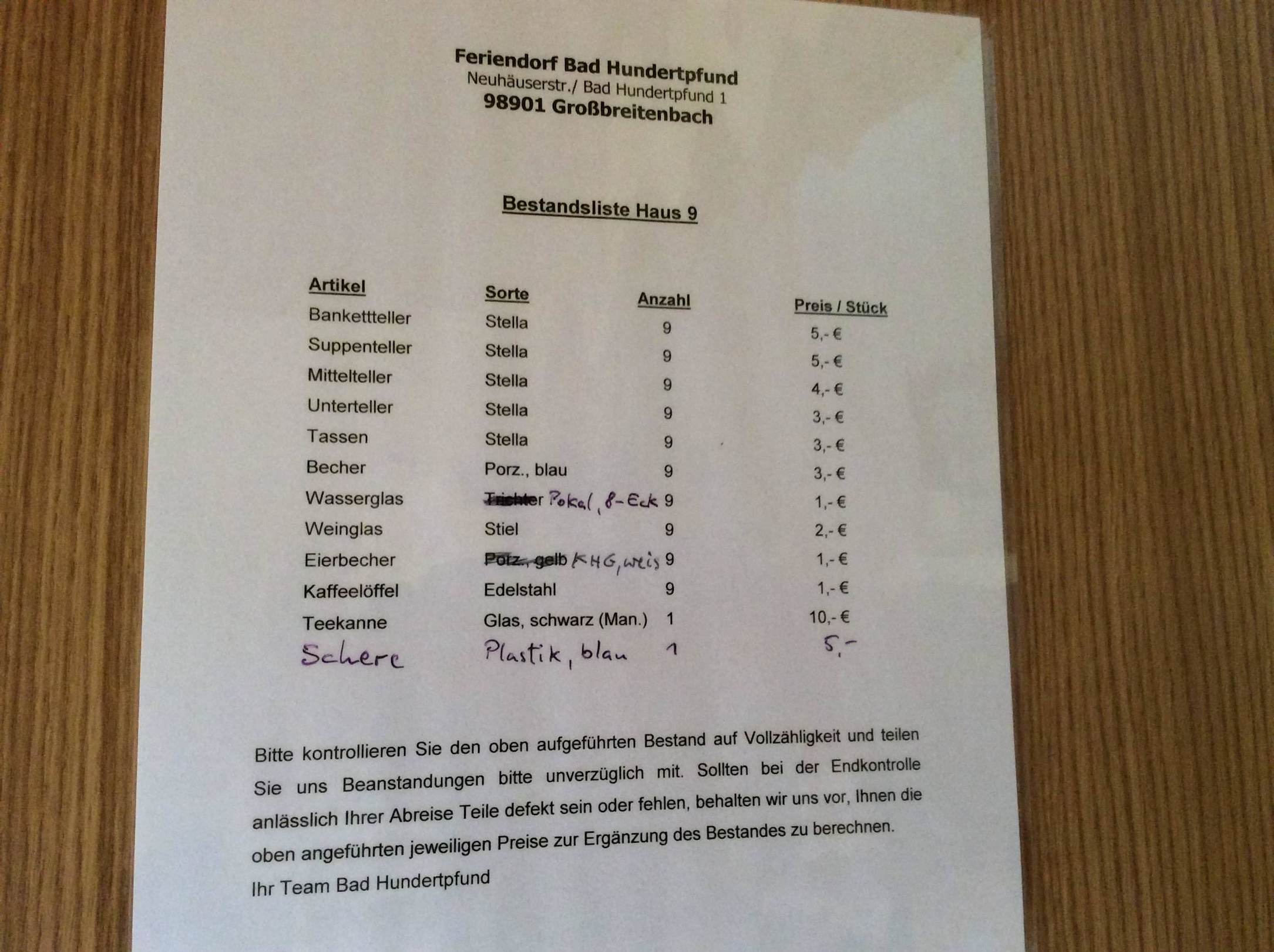 Inventar- und Preisliste