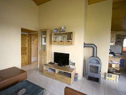 Wohnzimmer mit Flachbildschirm und Kamin