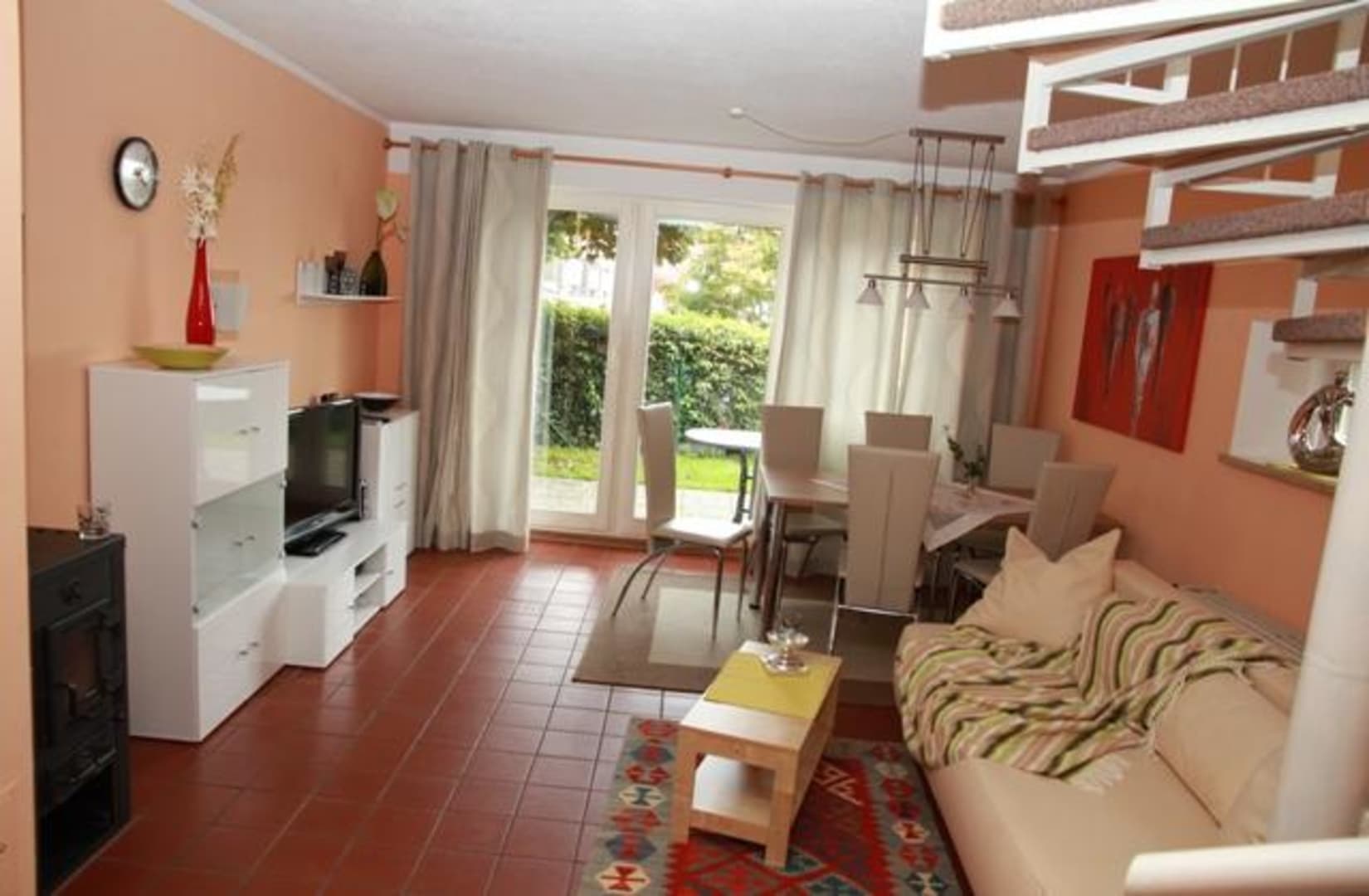 Wohnbereich mit Kaminofen Ferienhaus Adele