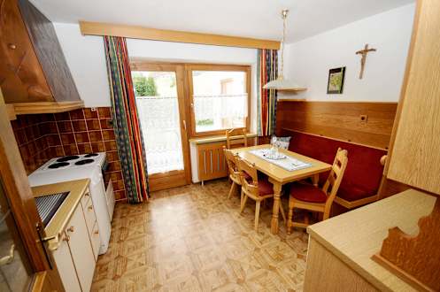 Küche mit Ausgang zum Garten