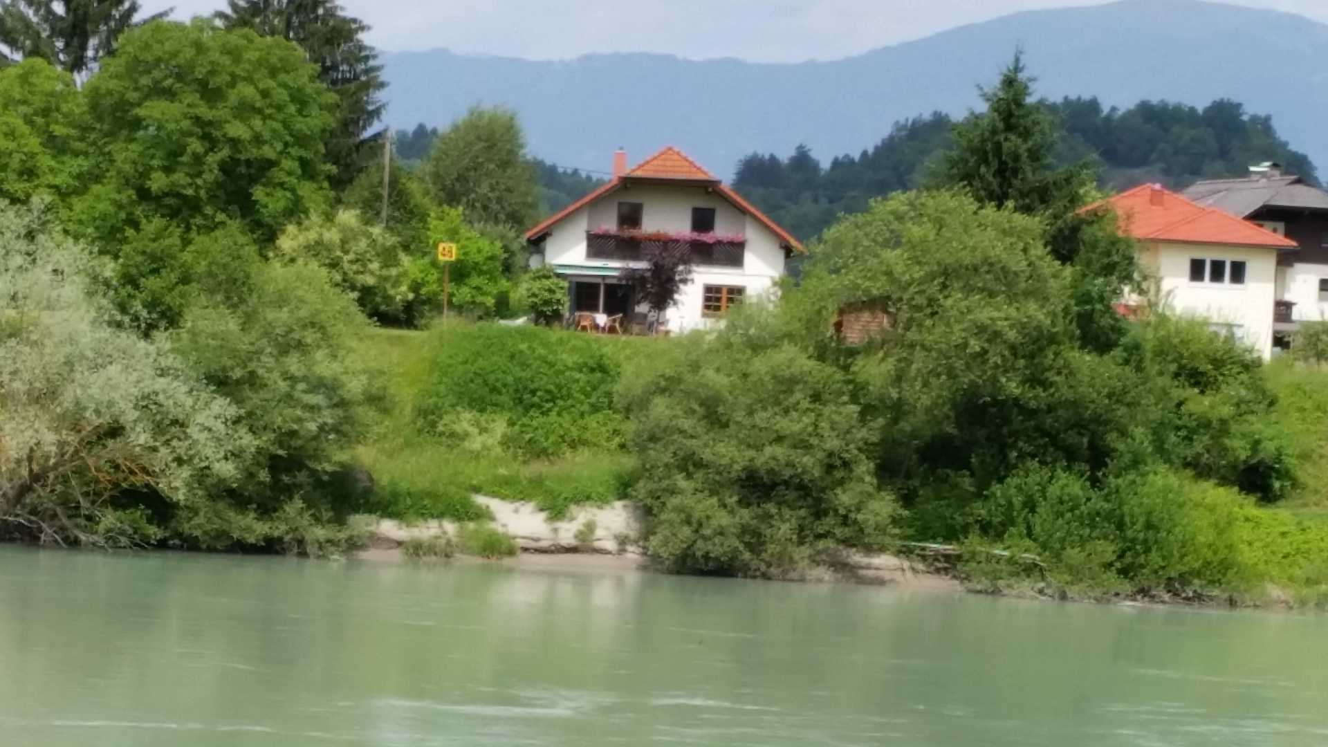 Blick vom anderen Drau-Ufer auf das Haus