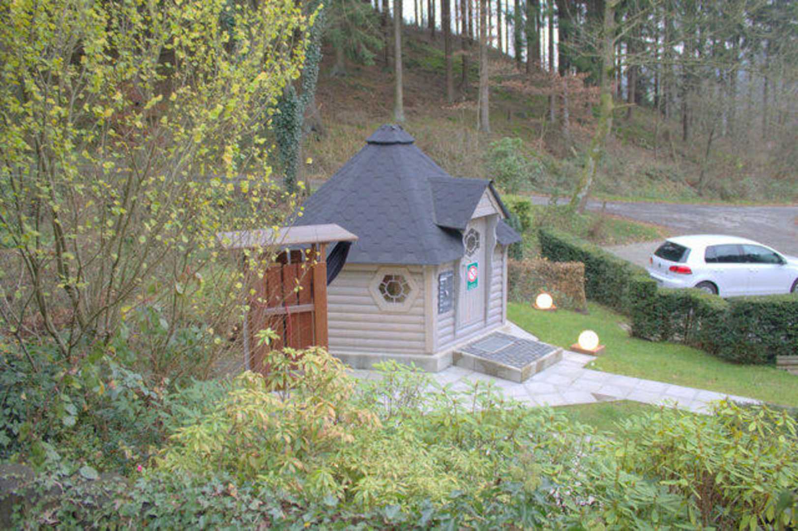Die gemütliche Außensauna neben dem Haus